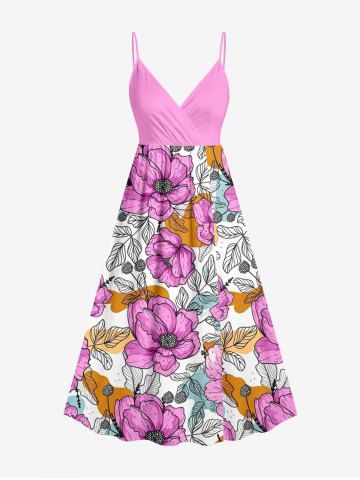 Robe à bretelles croisées à imprimé floral et feuilles grande taille, style hawaïen - Rose Vif - M