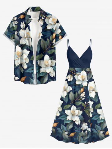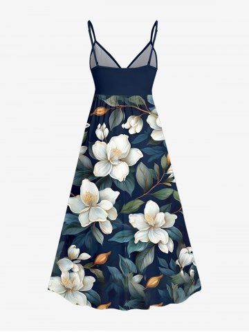 Robe à bretelles croisées à imprimé floral et feuilles grande taille, style hawaïen - Bleu Profond - 4x