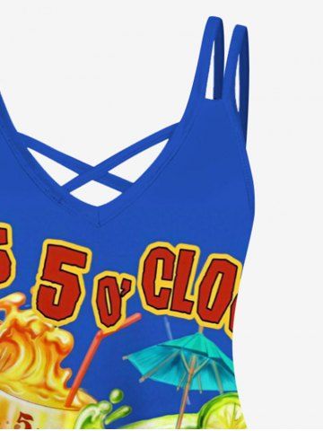 Robe à bretelles croisées à imprimé perroquet et noix de coco, style hawaïen, grande taille - Bleu - Bleu