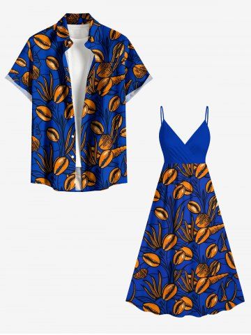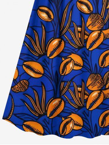 Robe à bretelles trapèze imprimée de grains de café et de branches d'Hawaï, grande taille - Bleu Marine - Bleu Marin