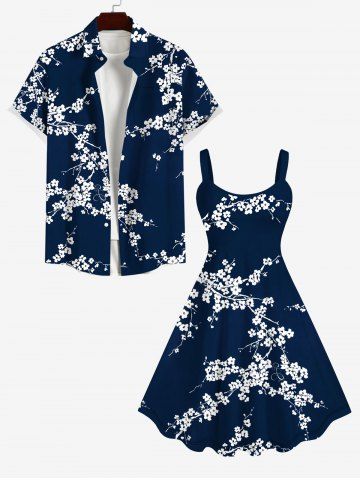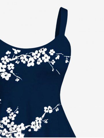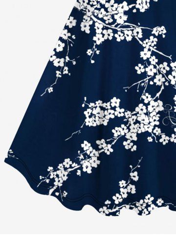 Robe Boucles D'Preilles Au Croceht Fleur de Prune Imprimée de Grande Taille - Bleu De Minuit - Xs