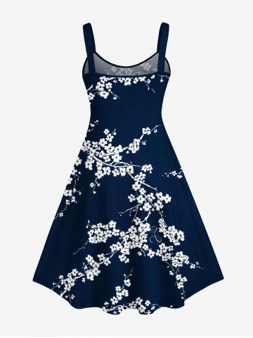 Robe Boucles D'Preilles Au Croceht Fleur de Prune Imprimée de Grande Taille - Bleu De Minuit - 6x