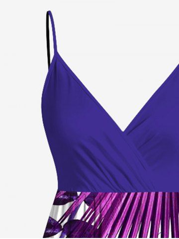 Robe cache-cœur hawaïenne à imprimé de feuilles tropicales et fleurs d'hibiscus, grande taille - Violacé Rouge - L