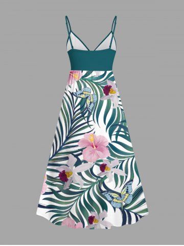 Robe cache-cœur hawaïenne à imprimé de fleurs d'hibiscus et de feuilles tropicales, grande taille - Vert Profond - 4x