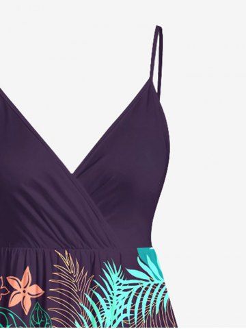 Robes Graphiques > Robe cache-cœur hawaïenne à imprimé de fleurs d'hibiscus et de feuilles tropicales, grande taille