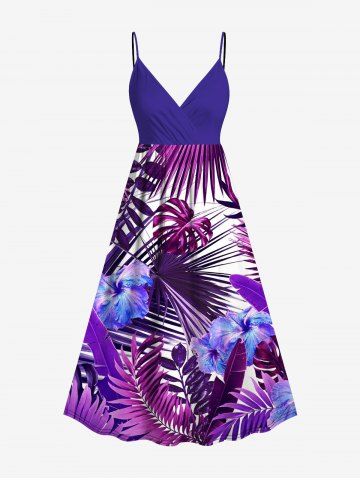 Robes Graphiques > Robe cache-cœur hawaïenne à imprimé de fleurs d'hibiscus et de feuilles tropicales, grande taille