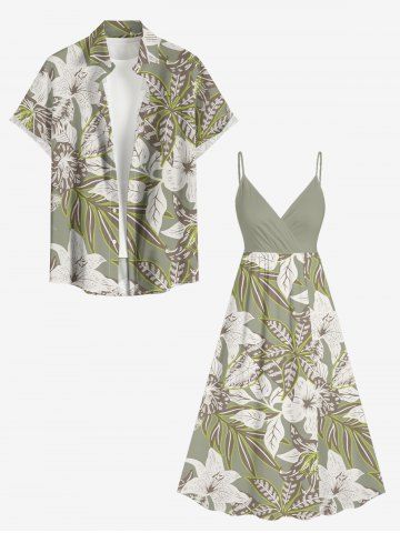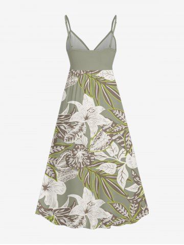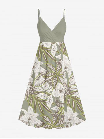 Robe cache-cœur hawaïenne à imprimé de fleurs tropicales et de feuilles, grande taille - Vert Clair - Vert Clair