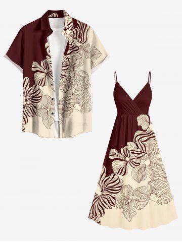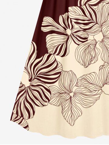 Robe cache-cœur hawaïenne à imprimé floral tropical et colorblock grande taille - Bronze - 5x