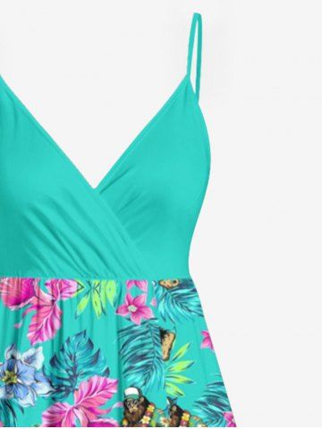 Robe cache-cœur hawaïenne à imprimé gorille, hibiscus et feuilles tropicales, grande taille - Émeraude - 1x