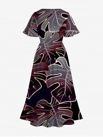 Robes Graphiques > Robe Cache-Coeur Mi-longue à Imprimé Feuille Tropicale Grande Taille