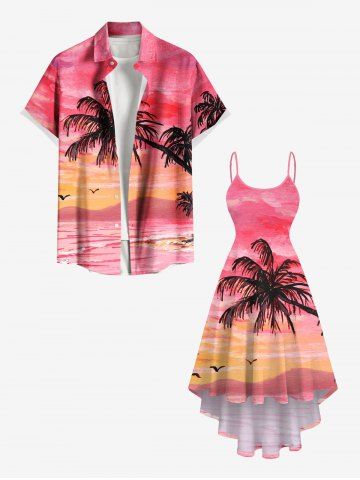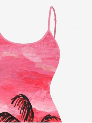 Robe camisole hawaïenne grande taille à imprimé ombré, motif cocotier, paysage marin, montagne, nuages - Rose Clair - Rose Léger