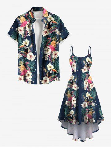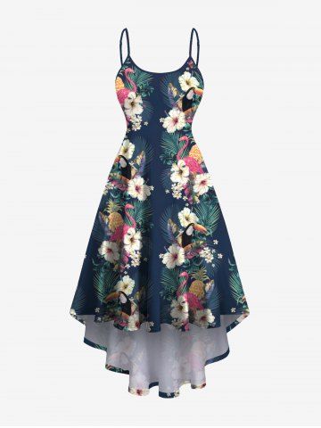 Robes Graphiques > Robe camisole hawaïenne taille plus à imprimé feuilles tropicales, hibiscus, flamant rose et ananas