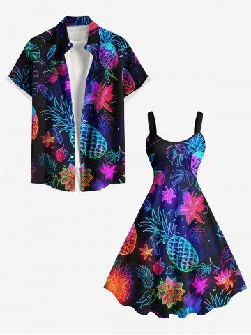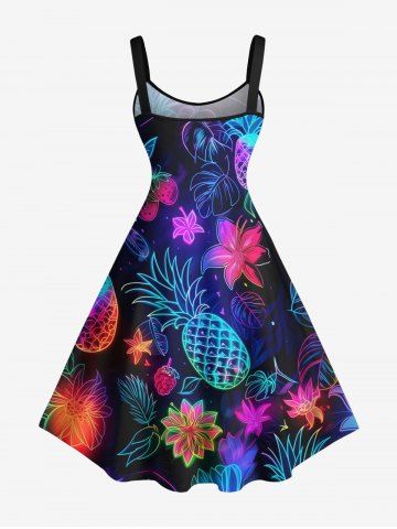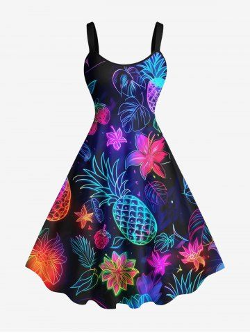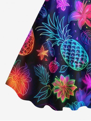 Robes Graphiques > Robe D'Entraînement Cerise Fleur et Feuille Tropicale Imprimées de Grande Taille