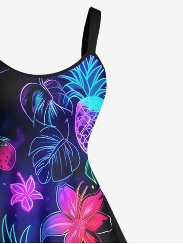 Robe D'Entraînement Cerise Fleur et Feuille Tropicale Imprimées de Grande Taille - Noir - Noir