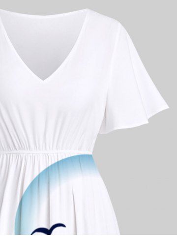 Robe D'entraînement Mi-longue à Imprimé Cocotier Tropical Grande Taille - Blanc - Blanc