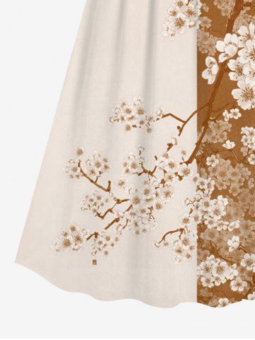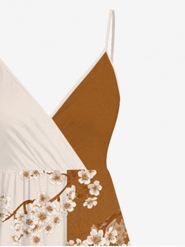 Robe D'Halloween Superposée Fleur Imprimée en Blocs de Couleurs de Grande Taille - Café Lumière - 1x