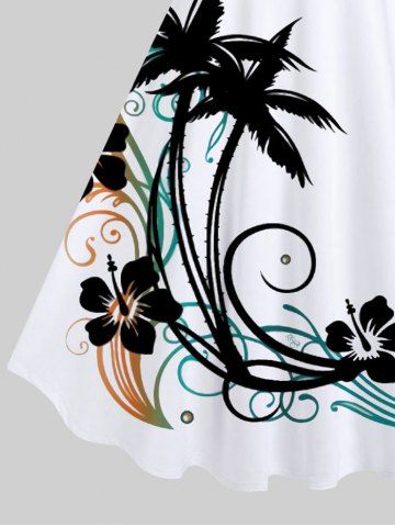 Robe D'Hawaï Fleur et Arbre Noix de Coco Imprimés de Grande Taille - Blanc - Blanc