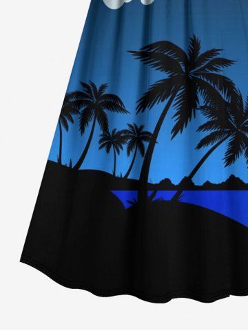 Robe de Plage Hawaïen Ligne A Etoile Arbre Noix de Coco et Lune Imprimés de Grande Taille - Bleu Profond - 6x