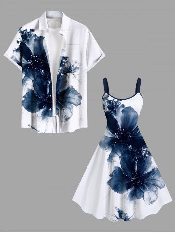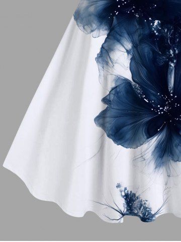 Robe Débardeur à Imprimé Fleurs Peintes à L'Encre Grande-Taille - Blanc - Blanc