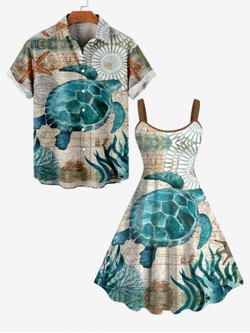 Robes Graphiques > Robe Bracelet Jonc avec Motif Floral et Tortue Marine Cadeau de L'Océan Grande-Taille