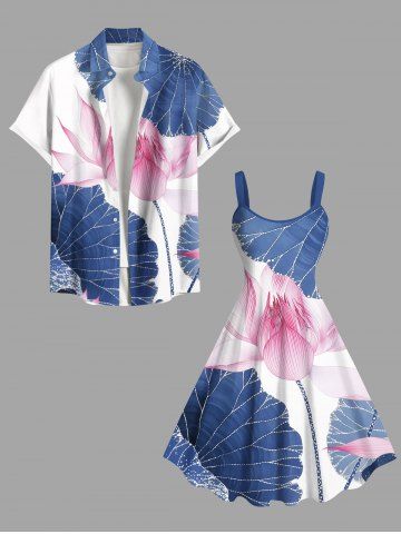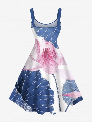 Robe Débardeur de Grande Taille à Imprimé Floral et de Feuilles de Lotus - Bleu - Bleu