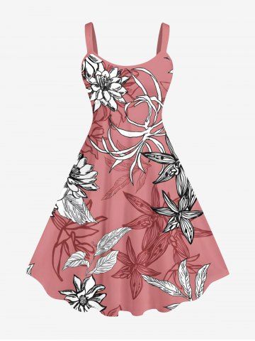 Robes Graphiques > Robe Débardeur de Grande Taille à Imprimé Floral et de Feuilles