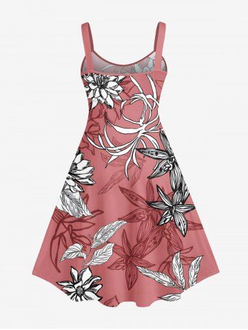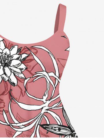 Robe Débardeur de Grande Taille à Imprimé Floral et de Feuilles - Rouge - Rouge