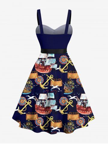 Robes Graphiques > Robe débardeur grande taille à imprimé ancre de voilier et ceinture amovible, coupe trapèze, boutonnée et croisière hawaïenne