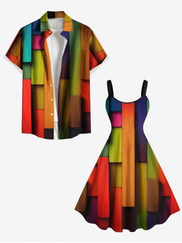 Robes Graphiques > Robe débardeur grande taille à imprimé blocs de bois colorés