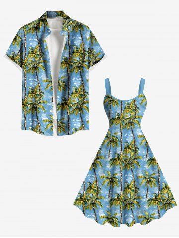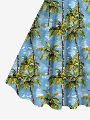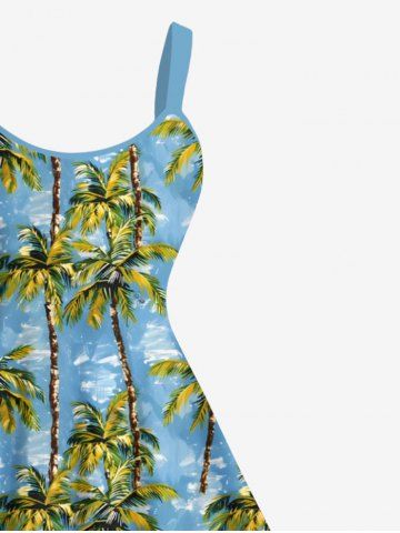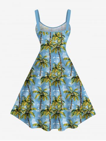 Robe débardeur grande taille à imprimé cocotier et mer, style hawaïen, coupe trapèze - Bleu Ciel - Bleu Ciel