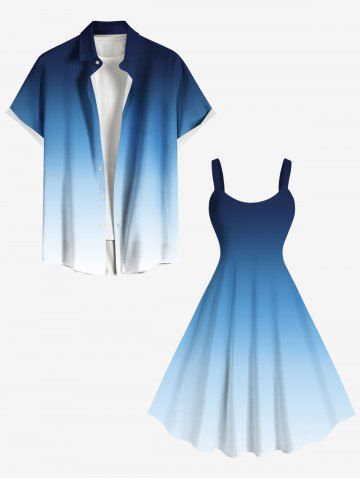 Ombre Colorblock Print Plus Size Matching Beach Outfit For Couples