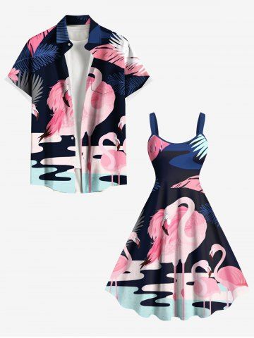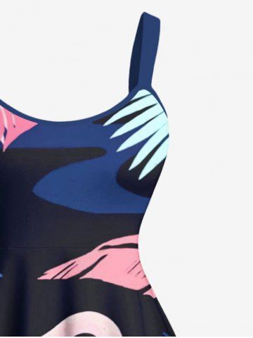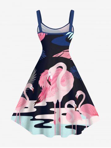 Robe débardeur grande taille à imprimé flamants roses et feuilles tropicales, style hawaïen - Bleu Marine - Bleu Marin