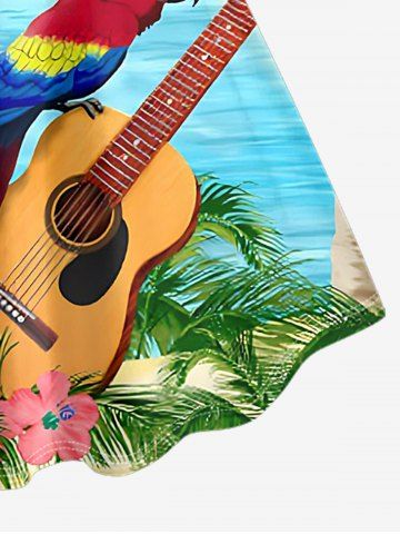 Robes Graphiques > Robe débardeur grande taille à imprimé fleurs, cocotier, perroquet, guitare, paysage marin et hors-bord, style hawaïen