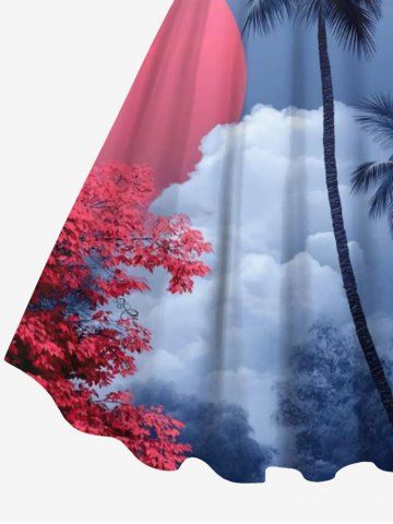 Robe débardeur grande taille à imprimé cocotier, fleurs, soleil, ombré, ciel, nuages, style hawaïen, coupe trapèze - Bleu Profond - L