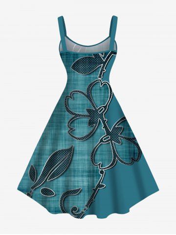Robes Graphiques > Robe débardeur grande taille à imprimé floral et feuilles texturé 3D style hawaïen, coupe trapèze.