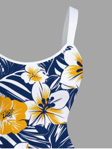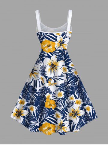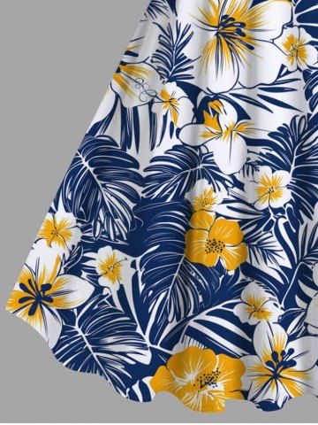 Robe débardeur grande taille à imprimé floral hawaïen, feuilles tropicales et hibiscus - Bleu - Bleu