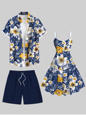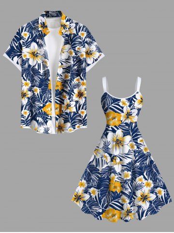 Tropical Leaf Hibiscus Flower Print Plus Size Matching Hawaii Beach Outfit For Couples