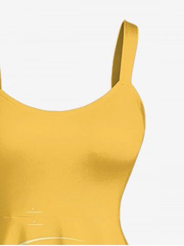 Robe débardeur grande taille à imprimé perroquet, cocotier, fleurs, soleil et paysage marin, style hawaïen - Brun Doré - M