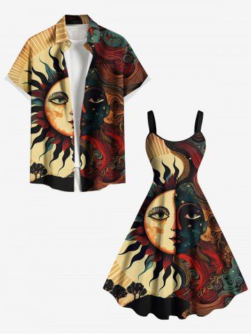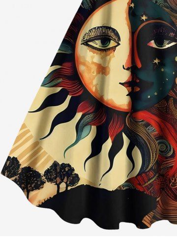 Robes Graphiques > Robe débardeur grande taille à imprimé soleil, lune, étoiles, visages et arbres
