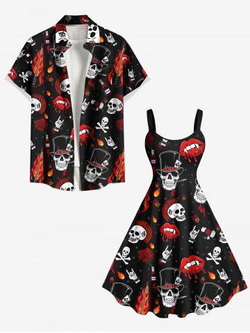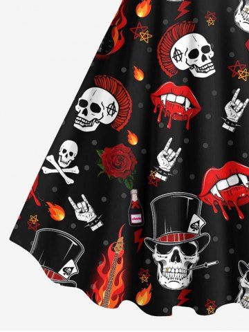 Robe débardeur grande taille à imprimé tête de mort, flamme, guitare, lèvres, rose - Noir - Noir