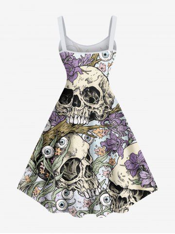 Robes Graphiques > Robe débardeur grande taille à imprimé tête de mort, fleurs et yeux pour Halloween
