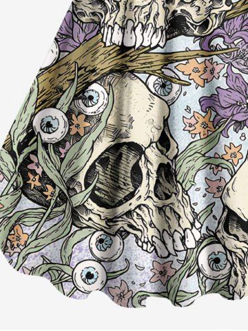 Robe débardeur grande taille à imprimé tête de mort, fleurs et yeux pour Halloween - Bleu Poudre - Xs