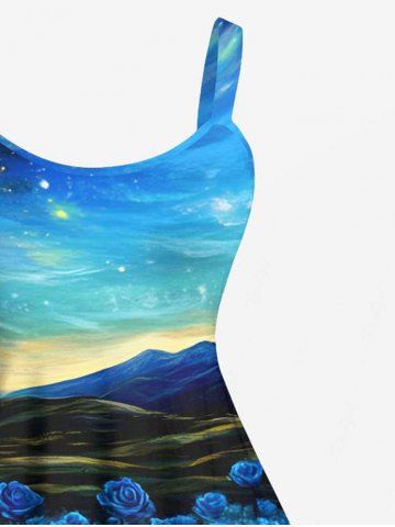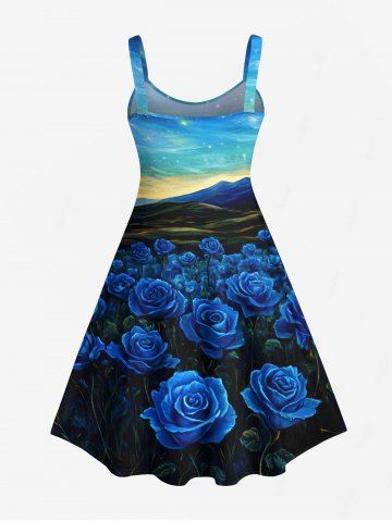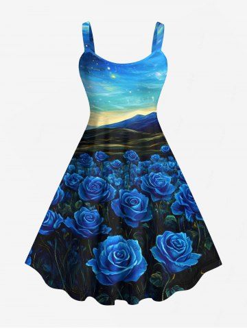 j*****e5Plus Size Rose Flower Painting Spiral Galaxy Print Hawaii A Line Tank DressColor: SKY BLUE Size: 4XTrue to size and fabric is nice and cool. very comfortable