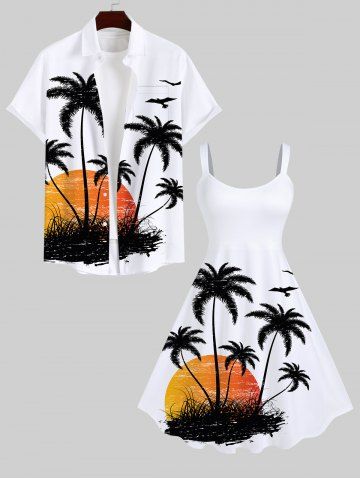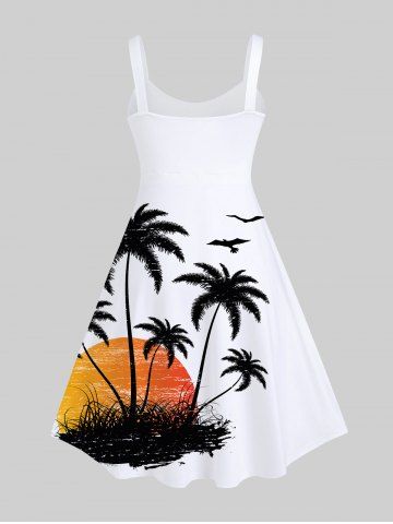 Robe Débardeur Hawaïen à Imprimé Cocotiers et Oiseaux Au Coucher du Soleil Grande-Taille - Blanc - Blanc