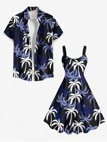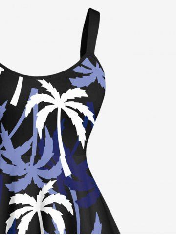 Robe Débardeur Hawaïen à Imprimé Cocotiers Grande-Taille - Noir - Noir