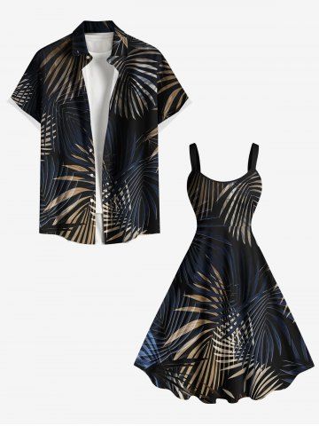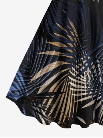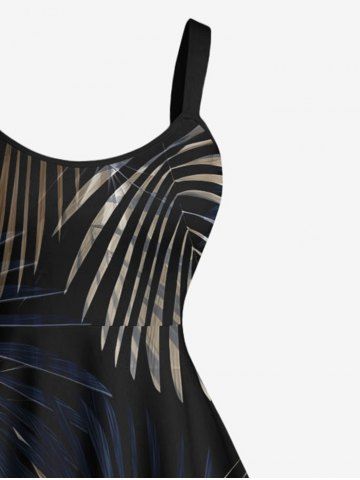 Robe Débardeur Hawaïen à Imprimé Feuilles Tropicales Grande-Taille - Noir - Noir
