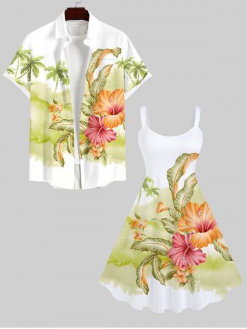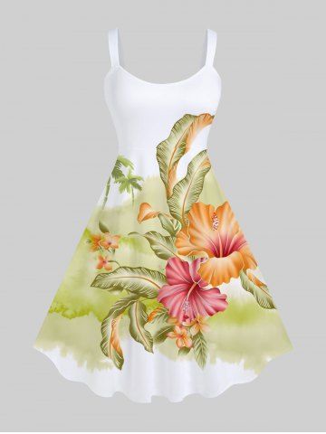 Robes Graphiques > Robe Débardeur Hawaïen Fleur Feuille Arbre Noix de Coco Fleurie Imprimés de Grande Taille
