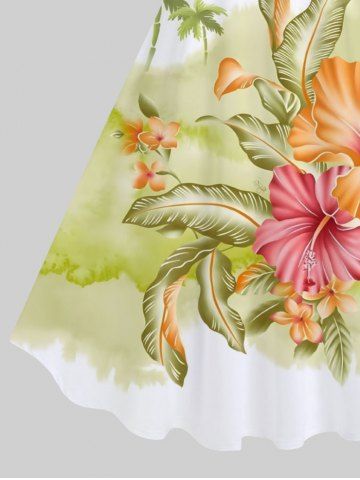 Robe Débardeur Hawaïen Fleur Feuille Arbre Noix de Coco Fleurie Imprimés de Grande Taille - Multi-a - L