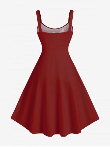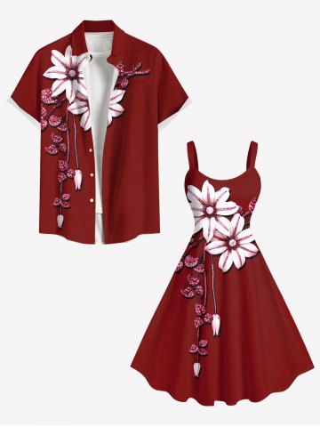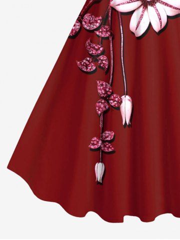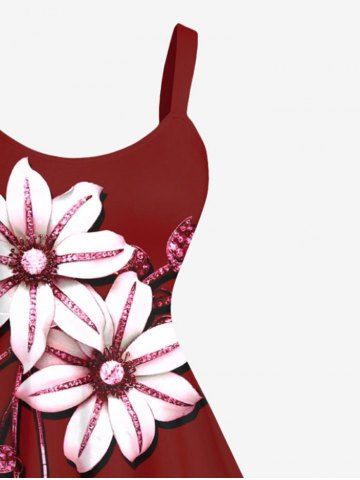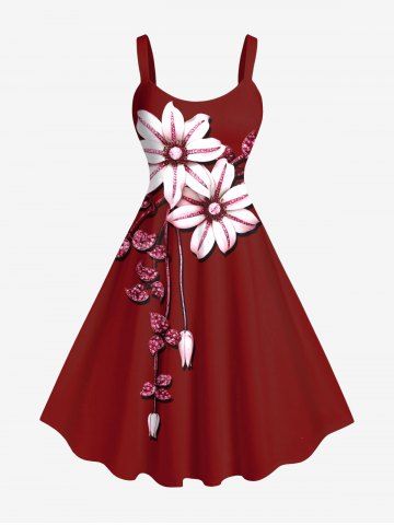 Robe Débardeur Hawaïen Ligne A Feuille Fleurie Imprimée de Grande Taille à Paillettes - Rouge - Rouge