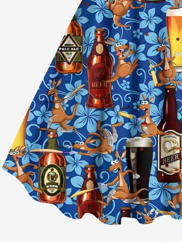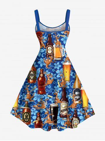 Robe Débardeur Hawaïen Ligne A Fleurie Imprimée de Grande Taille avec Poche Kangourou - Bleu - Bleu